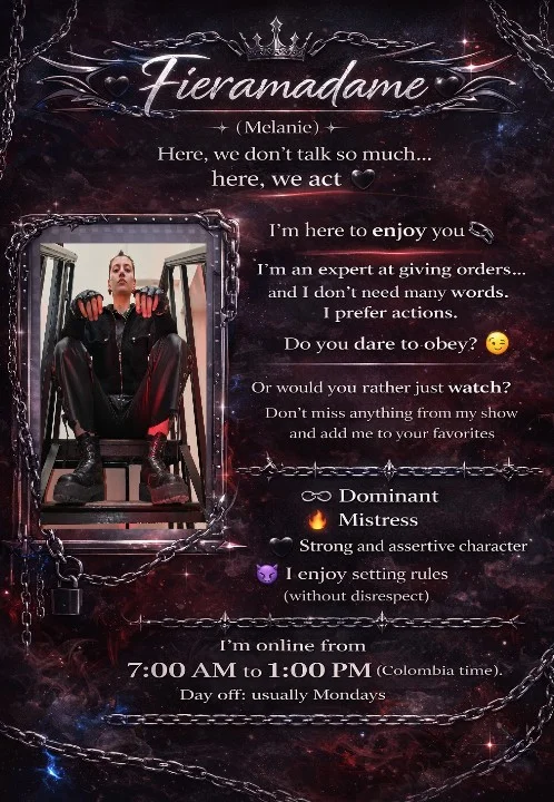 ✪ Dominant ✪ Mistress ✪ Strong and assertive character ✪ I enjoy setting rules (without disrespect)
